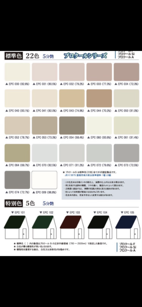 NCKの最高峰遮熱塗料エシカルプロクールの色見本のパンフレットには