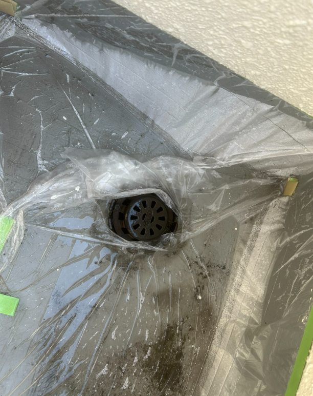 排水溝がビニールで覆われている状態です(AI作)