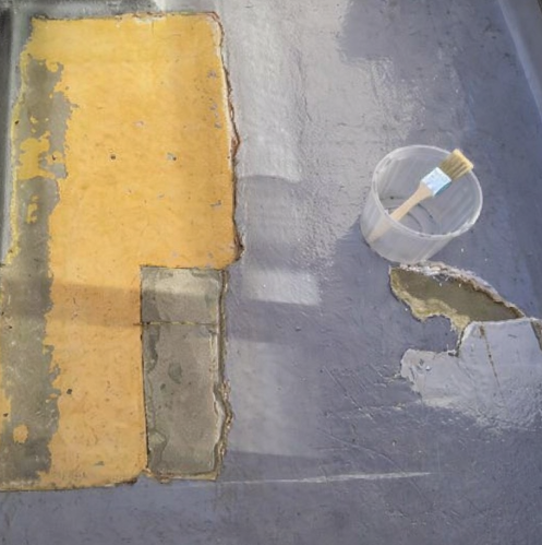ではどの様に補修していくのか、少し前に少し広い範囲で浮いていたFRP防水部分の補修で解説していきます。