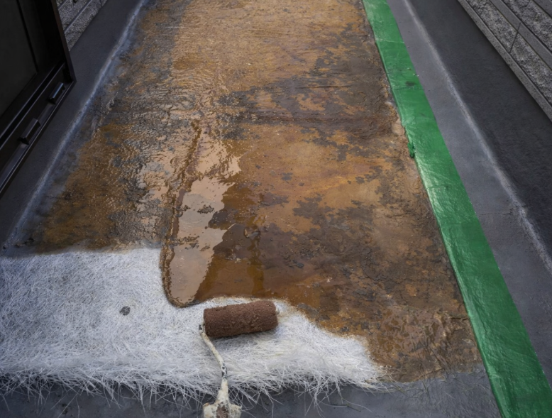 オーナー様から、アパートの解放廊下の床(FRP)が割れているとの事でチャリを飛ばしました(笑)