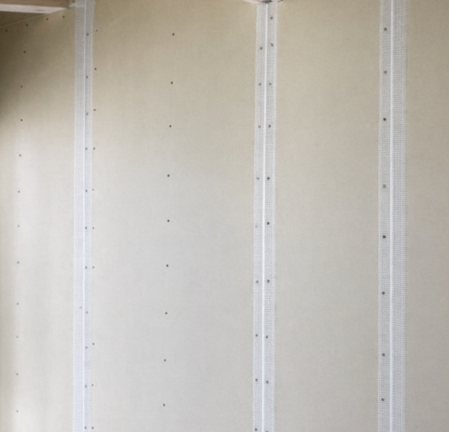 新規の部屋内塗装の場合石膏ボードに塗装することが多いです。先ずは石膏ボードの継ぎ目の処理を行います。