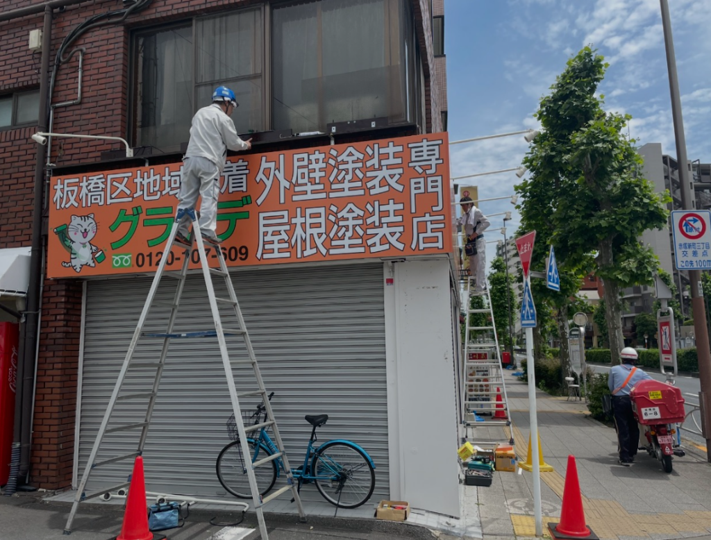 看板取り付け風景です。