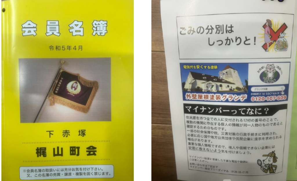冒頭にある写真の『梶山町会』名前の由来も諸説あります。4年ほど前に町会名簿について電話があり、相談を受けました。